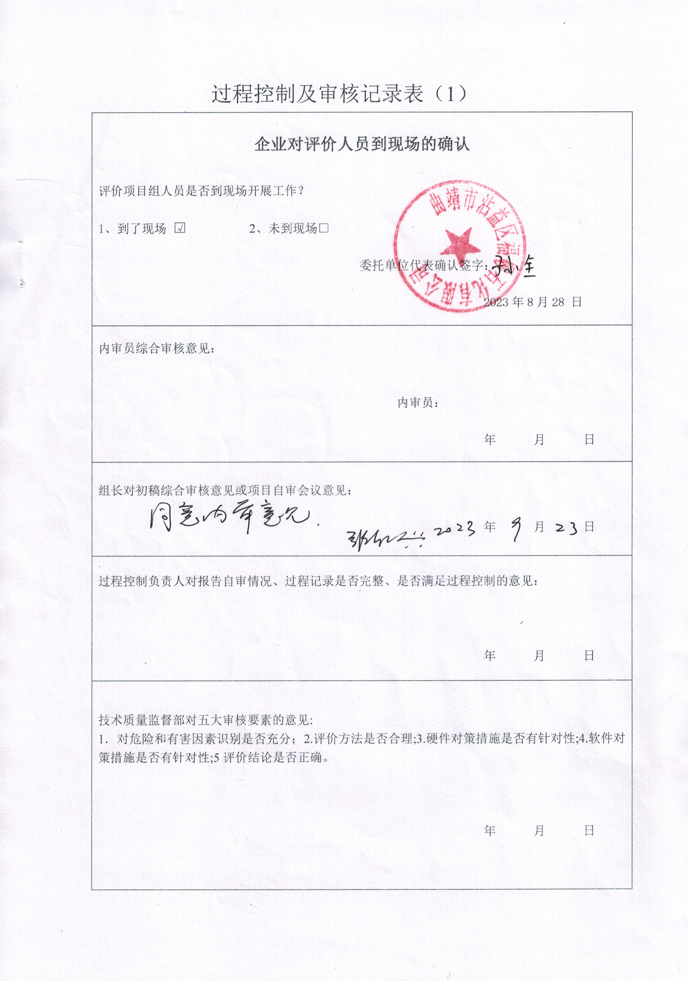 過程控制審核 | 內審意見(√ 通過 口 不通過 ) √ 是 口 否 | |||||||